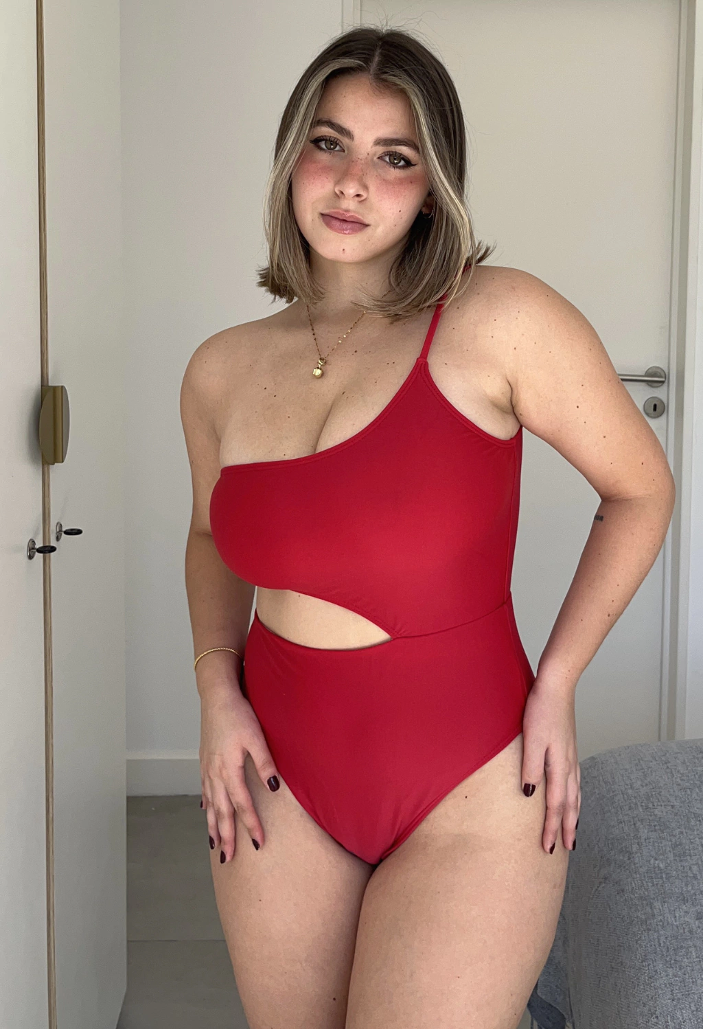 Entero Cala confeccionada en Lycra tricot Rojo .