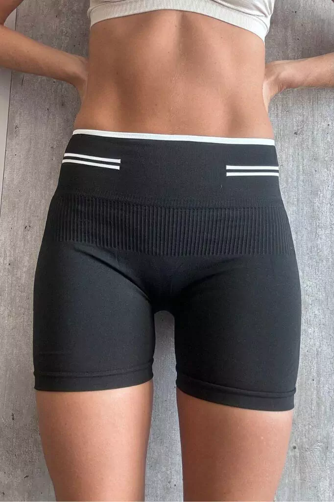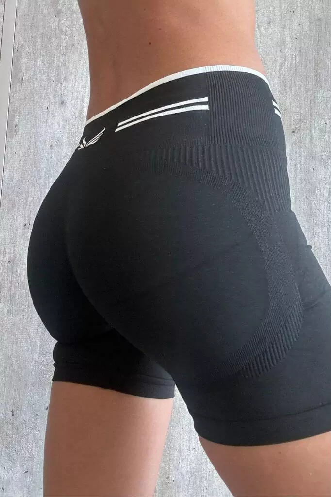Short deportivo up negro, con cintura sin elastico que no marca nada. Modelo sin costuras, que modela y costuras en la cola que dan efecto de realce.